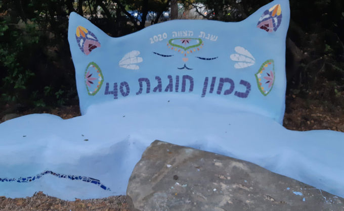 פרויקט של עיצוב ובניית פסל סביבתי ספינקסי במיוחד בפינה קסומה בישוב כמון. הפינה הייתה קצת מוזנחת והיה צורך להפיח בה חיים וצבע. לאחר חשיבה משותפת עם צוות הנערים והנערות של שנת המצווה, הוחלט על בנייה של פסל חתול שיהווה אטרקציה לגינה. בנוסף הוספנו משענת לספסל אשר היה כבר קיים במקום ושיפצנו מעט גם את שני הספסלים הנוספים שהיו שם.