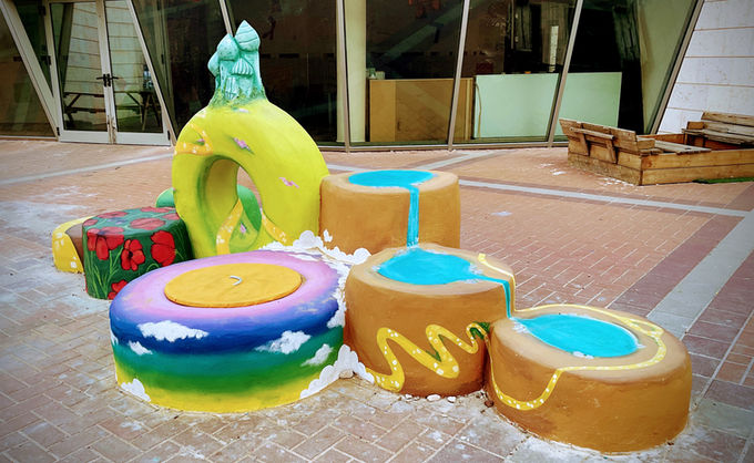 הסיפור הקוסם מארץ עוץ שנעשה בבית הספר כרמים באשקלון והוא כולל שלושה פסלים סביבתיים. הראשון הוא פסל משחק הכולל ארגז חול ומקום למשחי מים, השני ספסל גדול ללמידה חוץ כיתתית הכולל איורים של דמויות מתוך הספר והשלישי ספסל קטן של קשת בענן היכול לשמש גם לתאטרון בובות