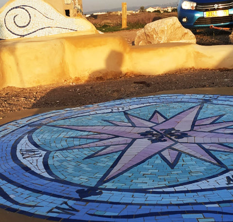 שלט ומצפן שהוכנו על ידי והתווספו והשלימו את פרויקט הפיסול הסביבתי הקהילתי בבוסתן הגליל